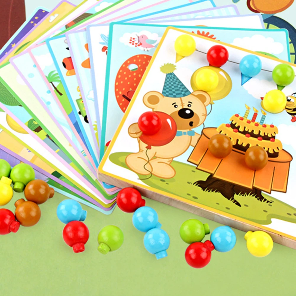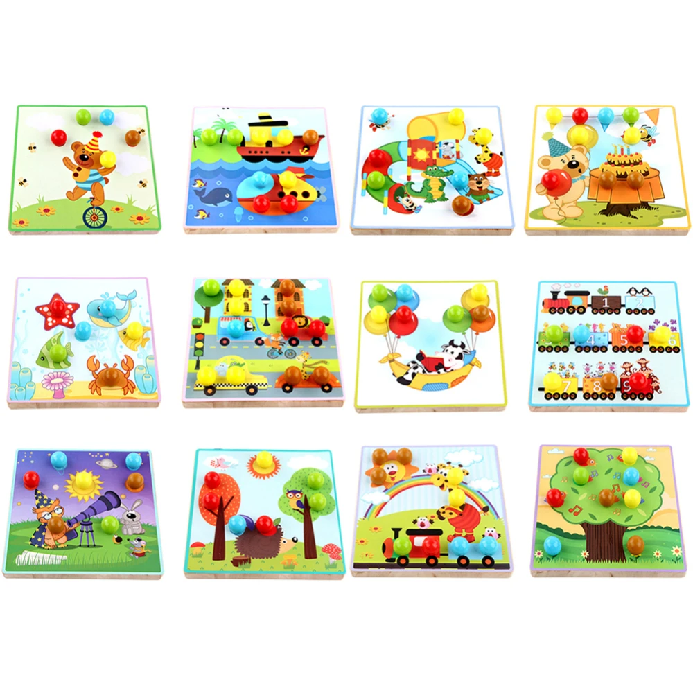 Deals 3D Wooden Puzzles Toys Mushroom Nail Kit Buttons Art Assembling Kids Educational Toys